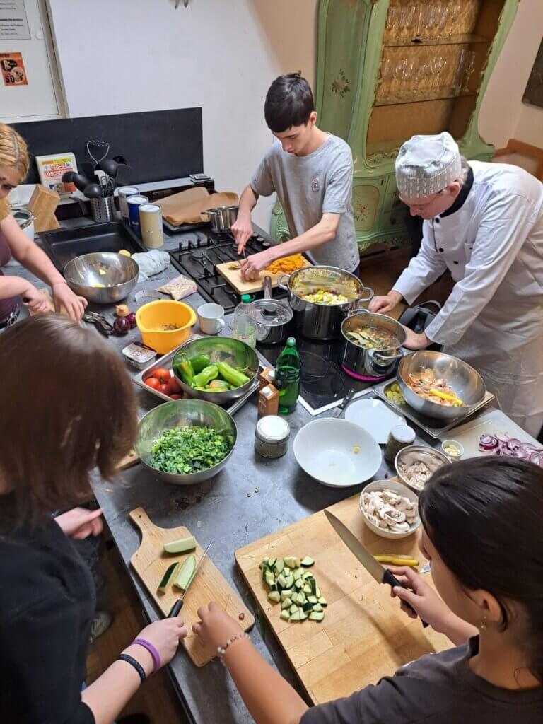 Besonders beeindruckt hat mich, wie freundlich alle in Graz waren und wie viel Mühe sich alle gegeben haben, uns etwas beizubringen. Die Kletterhalle und der Kochkurs waren echte Highlights. Dort konnte man Teamarbeit und Mut zeigen, aber auch einfach Spaß haben.